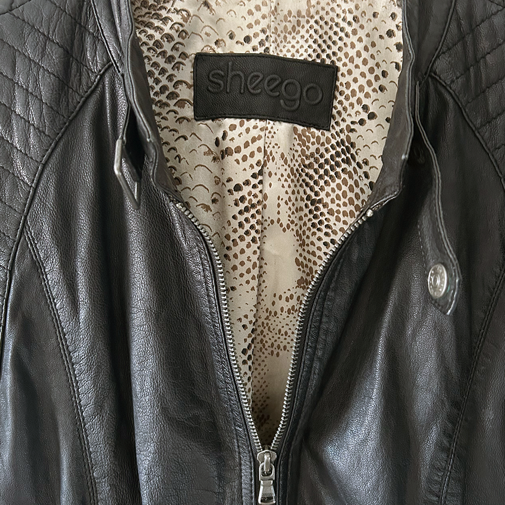 Zip front. 4 external zip pockets. Fully lined (snake skin effect)