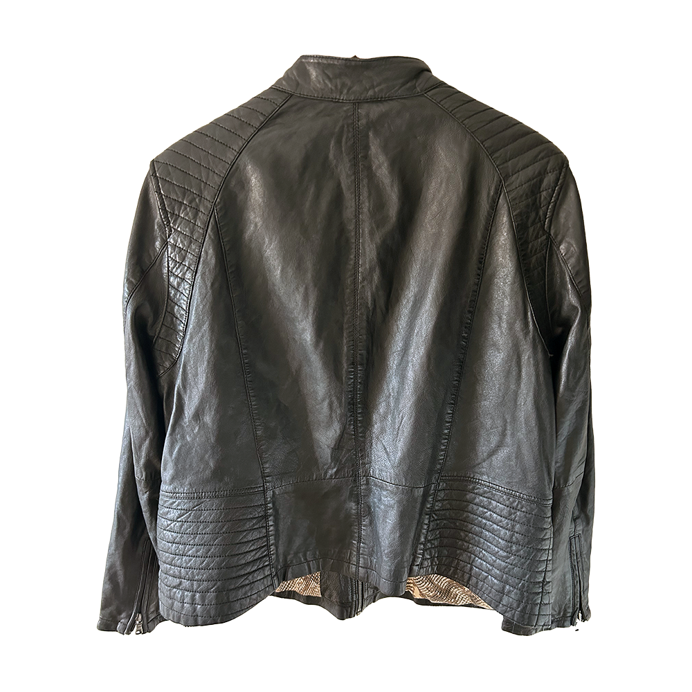 Ladies retro biker style black leather jacket
