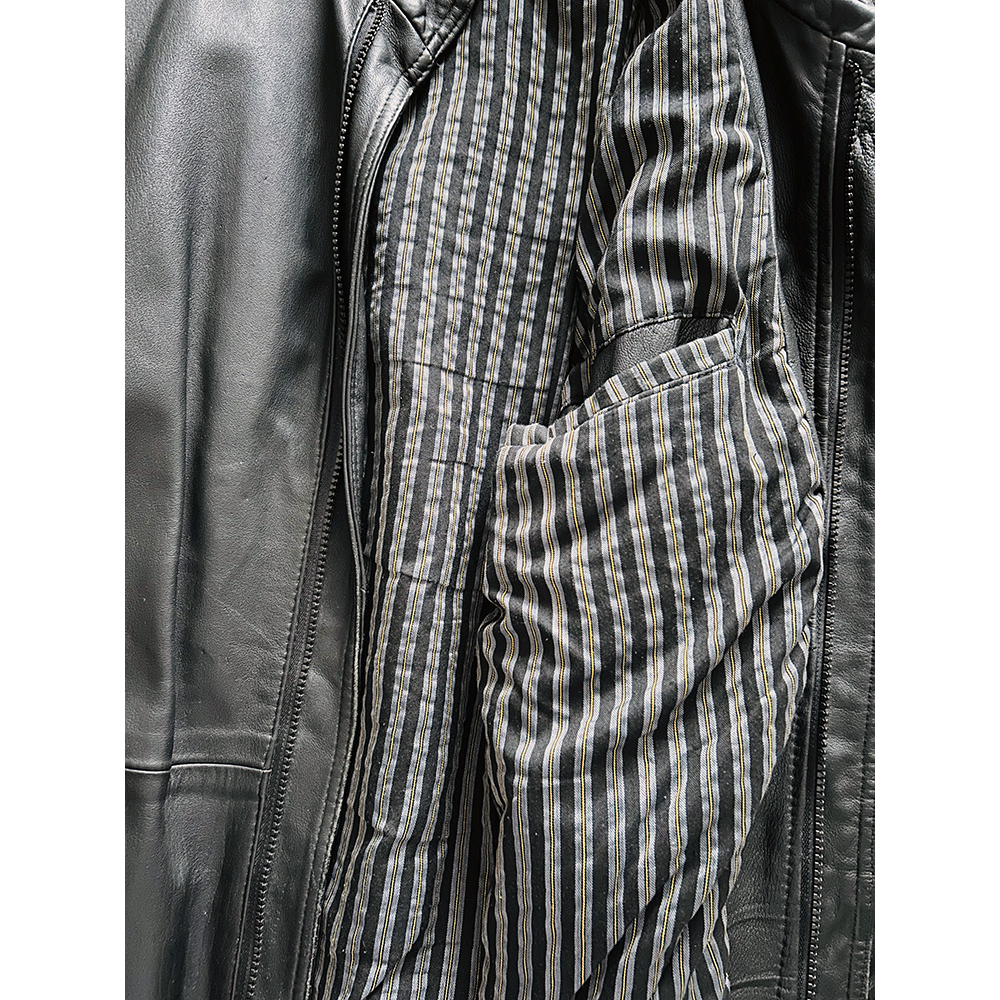 Black leather with striped lining