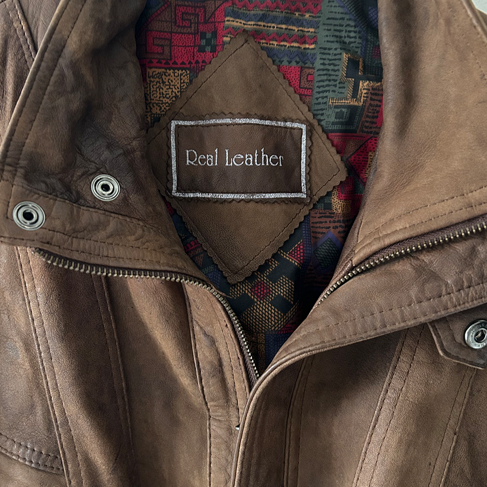 Men's vintage 80s brown leather jacket